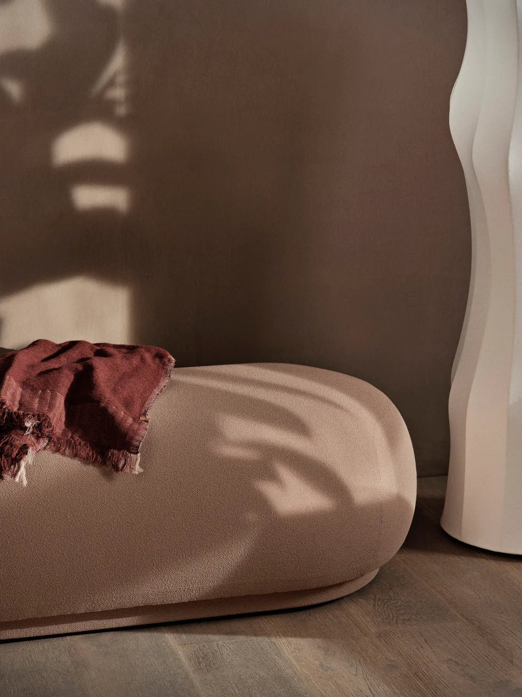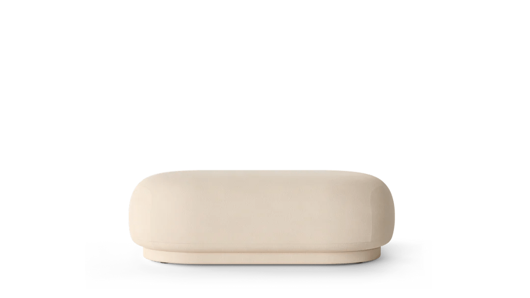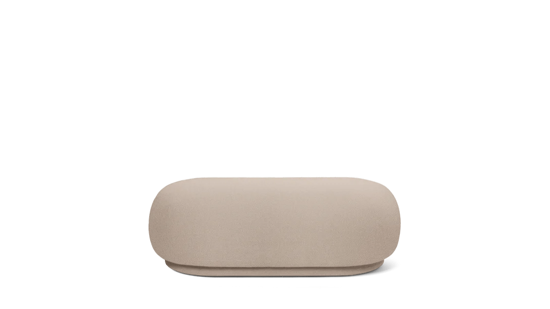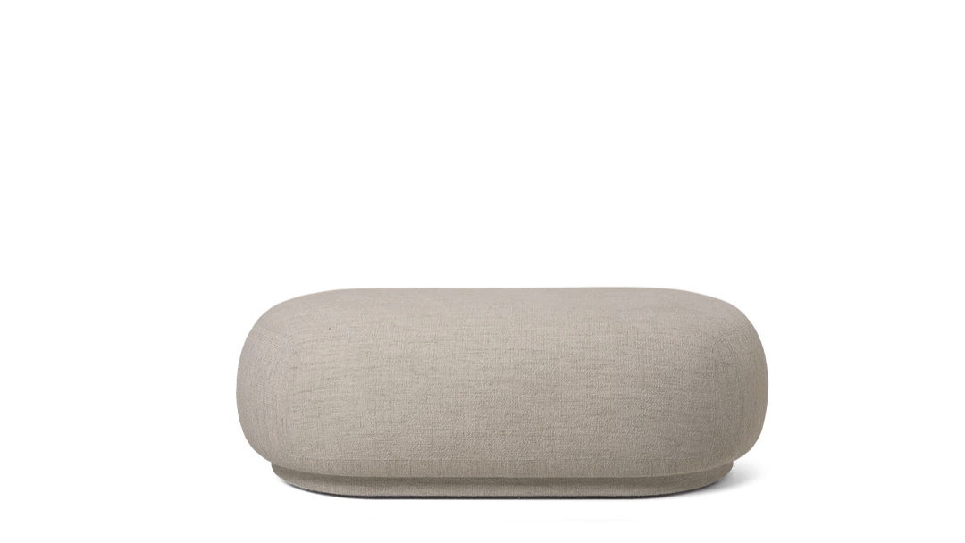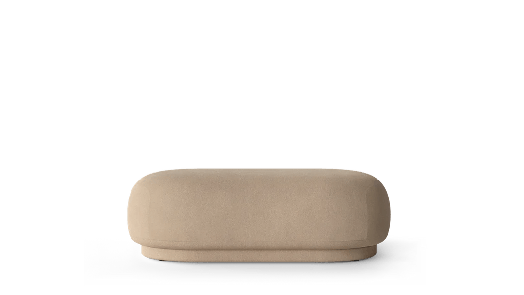 The Ferm Living Rico Ottoman brings that same curvaceous design philosophy from the Rico collection into a multipurpose piece that actually earns its place in your room. Available as a made-to-order piece, you get to choose from their complete range of fabrics including chunky boucle textures, smooth brushed finishes, rich grain weaves, and specialty patterns that coordinate perfectly with other Rico pieces or stand beautifully on their own. At 124cm wide and 69cm deep, this thing is substantial enough to work as extra seating when people come over, but the 41cm height makes it perfect for putting your feet up while watching TV or as an impromptu coffee table that doesn't feel awkward. The organic curves and soft lines give it this welcoming quality that makes every room feel more relaxed and lived-in rather than formal or stuffy. What makes this ottoman really useful is how it handles all those situations where regular furniture just doesn't quite work. Need somewhere to stack books and magazines? Perfect height for that. Kids need extra seating for game night? The generous proportions handle multiple people comfortably. Want to put your feet up while working from your sofa? The depth gives you proper support without having to angle yourself weird. The PU foam construction with inner wooden structure means it holds its shape whether someone's sitting on it or it's just holding stuff, and the curved base gives it this grounded feeling that doesn't wobble or feel tippy like some ottomans do. The fact that it's made in Italy shows in the construction quality - this isn't going to start sagging or looking worn after a few months of real use. Ferm Living has been doing this whole Danish design thing since 2005, starting when founder Trine Andersen couldn't find wallpaper she liked and decided to make her own instead. That same approach of creating what you actually want rather than settling for what's available carries through to their furniture. The Rico collection represents their understanding that the best pieces adapt to how you live rather than forcing you to change your habits. Working with skilled Italian manufacturers, they've developed furniture that combines Scandinavian simplicity with the kind of construction quality that means these pieces become part of your home for years rather than just until you find something better.