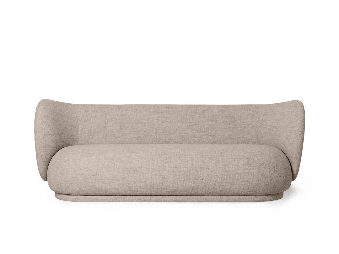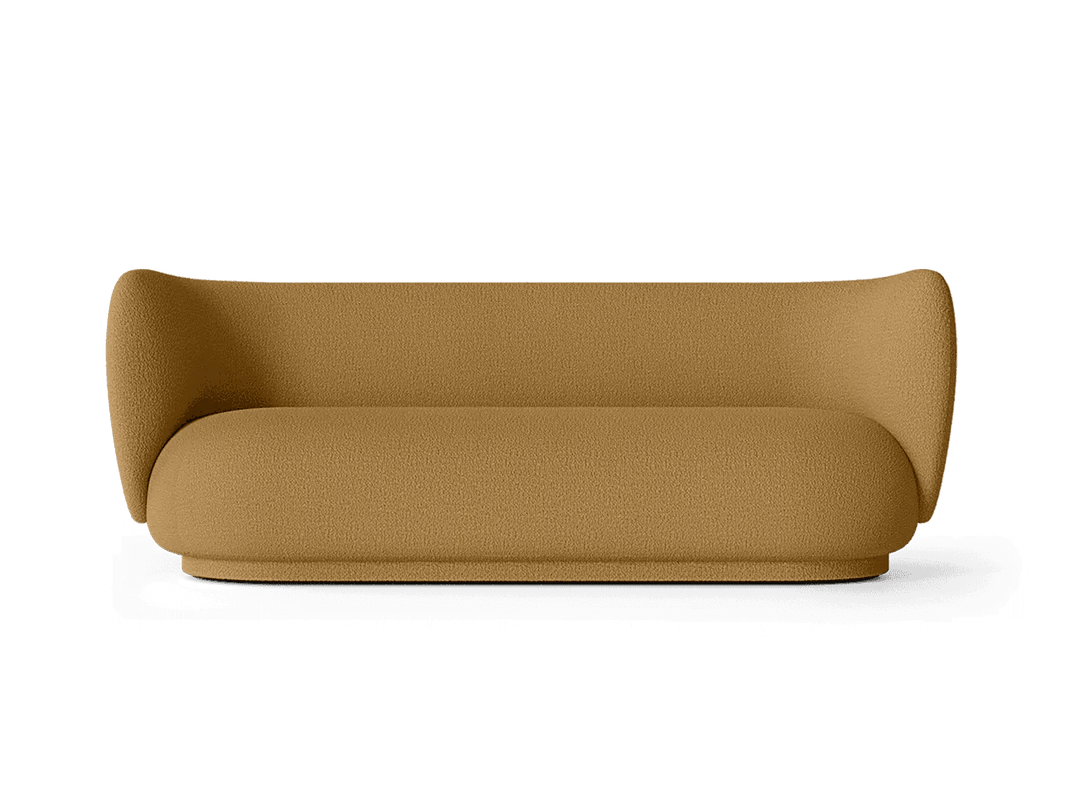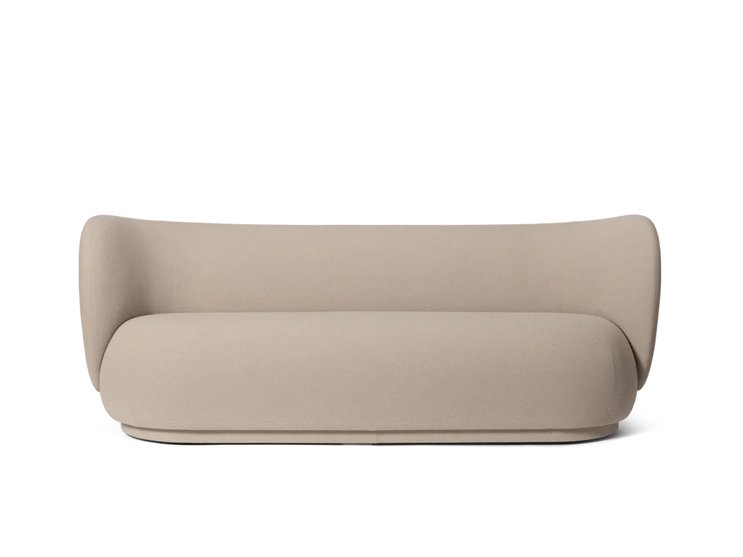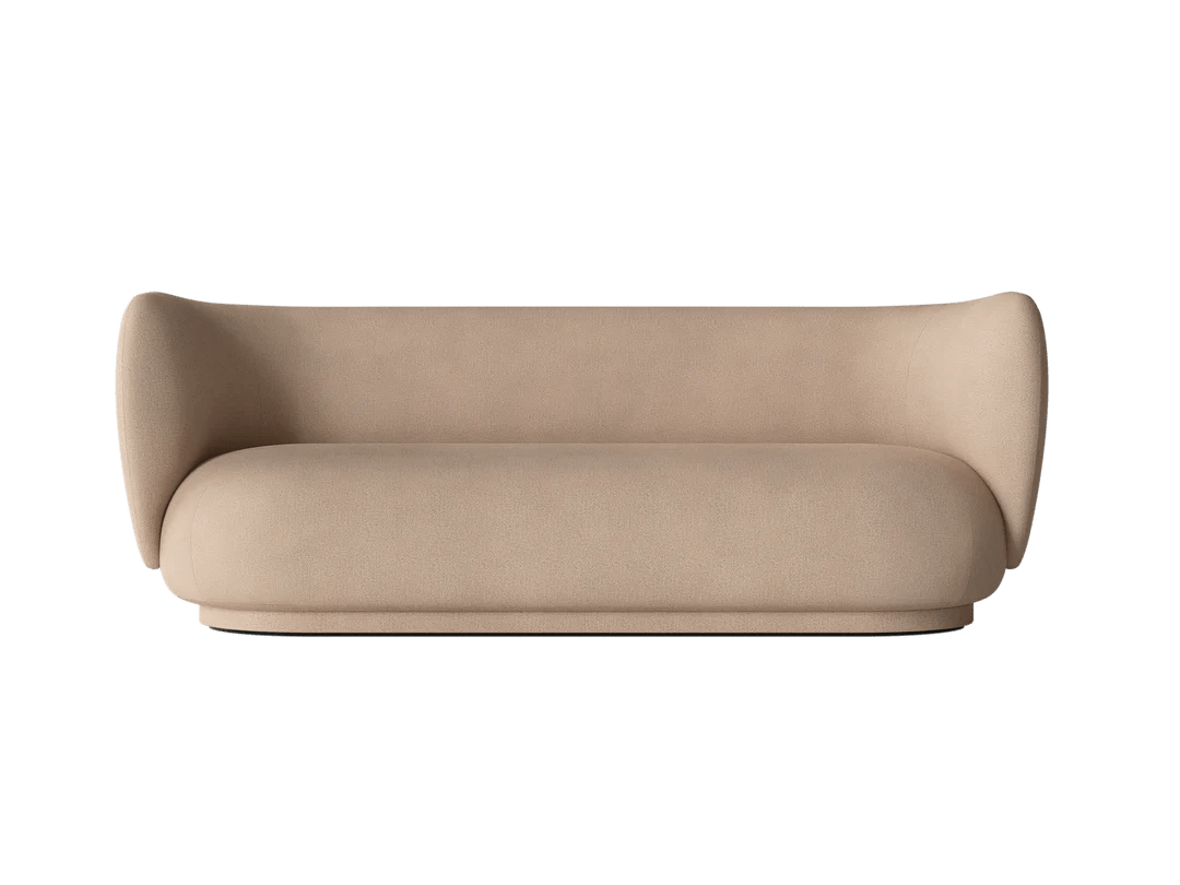 The Ferm Living Rico Sofa 3 is that perfect piece when you want serious seating that doesn't look like it's trying too hard to be the center of attention. As a made-to-order sofa, you get to choose from their complete fabric range across multiple groups - everything from soft bouclé with that amazing loopy texture to rich faded velvet that makes your living room feel way more luxurious. What makes this three-seater special is how the curved backrest flows smoothly into the armrests, creating this embracing quality that actually makes you want to settle in for longer conversations or weekend movie marathons. The soft lines and voluminous shape bring warmth to any room without being overly dramatic, and at 210cm long, it's generous enough for three people to sit comfortably without feeling cramped. The construction quality shows up in all the right ways when you're using it daily. The backrest uses molded foam over an inner steel structure that provides real support, while the seat combines molded foam with a wooden frame for that perfect balance between soft comfort and lasting durability. At 76.5cm high with the signature curved profile, it provides proper back support without feeling rigid or formal. The low-density polyethylene feet are cleverly hidden by upholstery that extends nearly to the floor, giving it this floating appearance that makes rooms feel more spacious. What's practical is how the generous proportions work for everything from casual lounging to more formal entertaining, and the timeless aesthetic means it won't look dated in a few years. Ferm Living creates furniture from Copenhagen with that Danish understanding that good design should enhance daily life rather than just looking impressive in photos. They recognize that a three-seater sofa needs to handle real family use - from morning coffee and newspaper reading to evening hosting and everything in between. The Rico collection reflects their philosophy of balancing contrasts, bringing together the elegance you want for special occasions with the everyday comfort that makes a house feel like home. Through their partnership with skilled manufacturers and focus on quality materials, they create pieces that become integral parts of how you actually live rather than just furniture you bought.