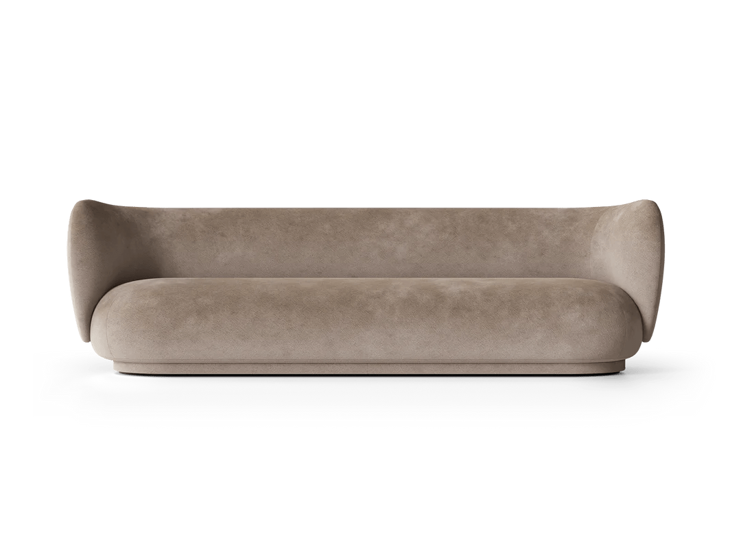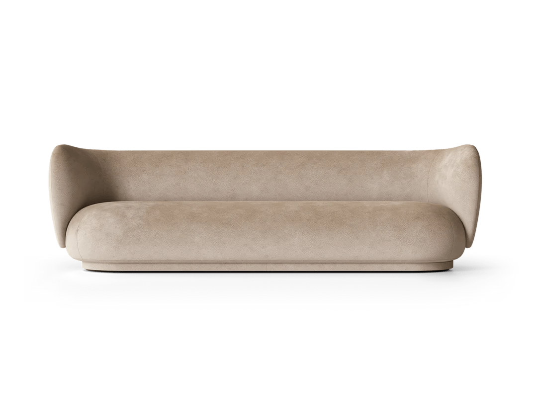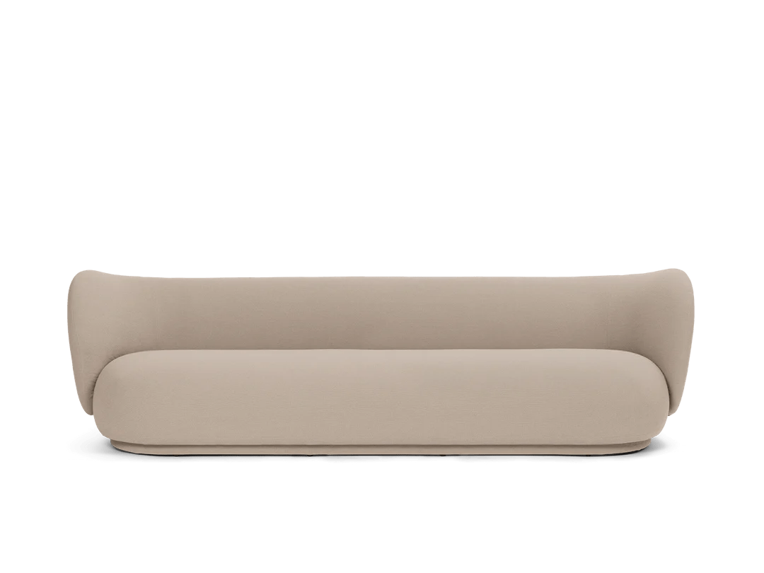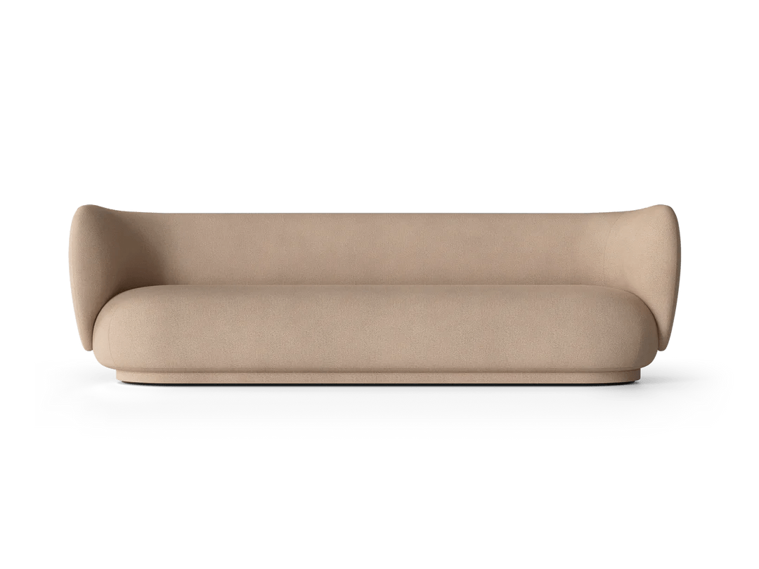 The Ferm Living Rico Sofa 4 is the ultimate statement piece when you need serious seating capacity but don't want your living room to look like a furniture showroom. Since it's made to order, you get to choose from their extensive fabric collection across multiple groups - everything from soft bouclé with that amazing textured feel to brushed chenille and premium Kvadrat options like Hallingdal that completely transform the character of the piece. What makes this four-seater work so well is how the curved backrest flows seamlessly into the armrests, creating this embracing quality that actually makes large gatherings feel more intimate rather than formal. At 260cm long, it's genuinely spacious enough for four adults to sit comfortably without that awkward elbow-bumping you get with smaller sofas trying to accommodate too many people. The construction quality becomes obvious pretty quickly when you're hosting those longer dinner parties or family movie nights. The backrest uses molded foam over an inner metal structure that provides real support even when people are leaning back and settling in for hours, while the seat combines polyurethane foam with a wooden frame for that perfect balance between sink-in comfort and lasting durability. At 76.5cm high with those signature curved lines, it provides proper support without feeling rigid or too formal for everyday use. The low-density polyethylene feet are cleverly hidden by upholstery that extends nearly to the floor, giving it this floating appearance that actually makes large rooms feel more proportional rather than dominated by one massive piece of furniture. Ferm Living approaches furniture design from Copenhagen with that Danish understanding that large pieces need to enhance family life rather than dictate how you live. They recognize that a four-seater sofa will become the heart of your home - the place where kids do homework, friends gather for conversations, and families spend weekend mornings reading together. The Rico collection reflects their philosophy of creating pieces that work as hard as they look good, combining the elegance you want for special occasions with the everyday comfort that makes a house feel like home. Through their partnership with skilled Italian craftspeople and focus on premium materials, they create furniture that becomes integral to how you actually use your space rather than just impressive pieces you worry about protecting.