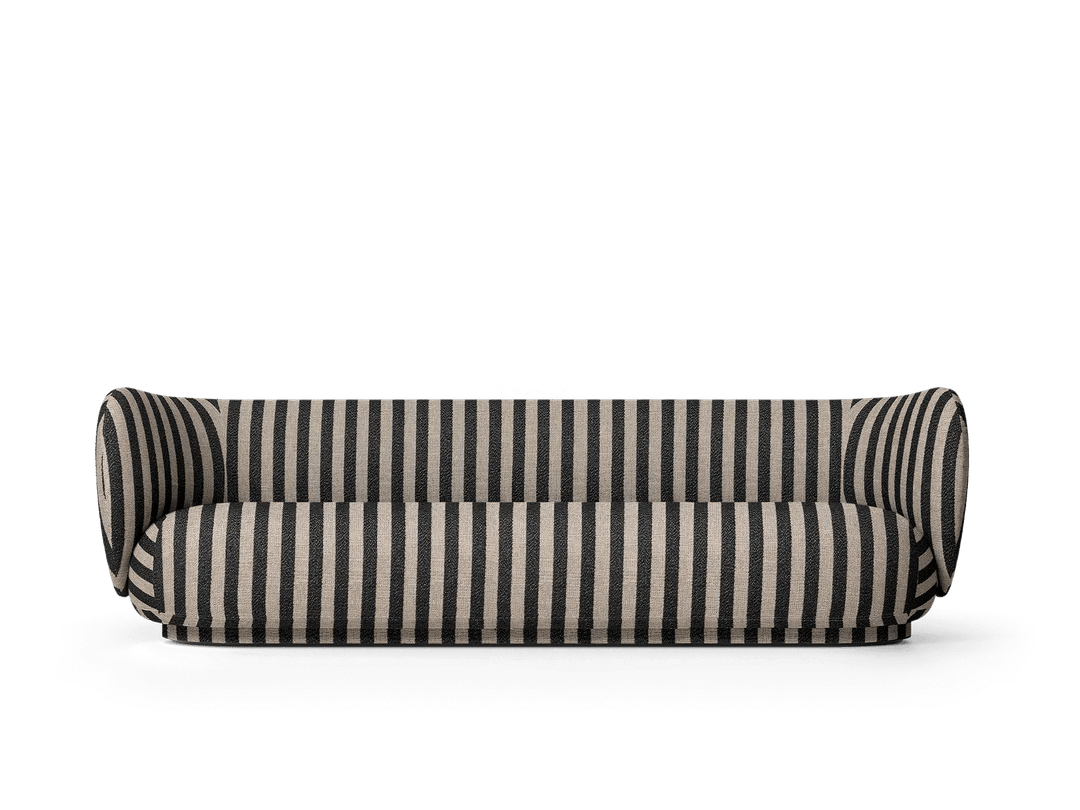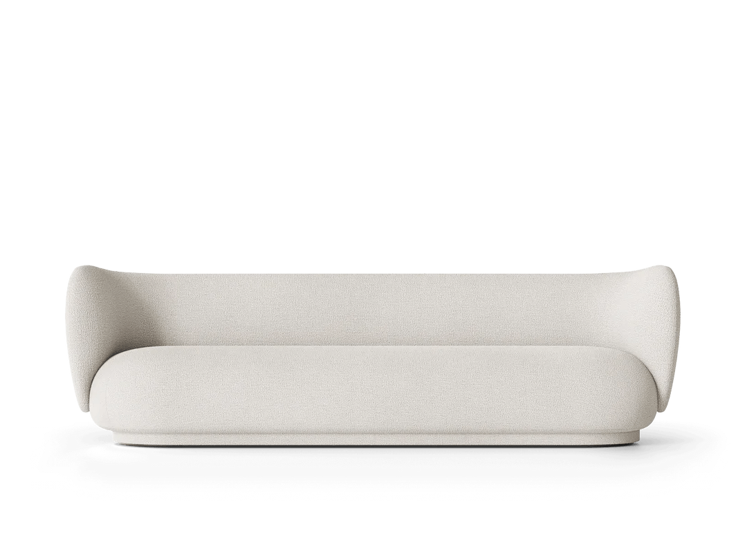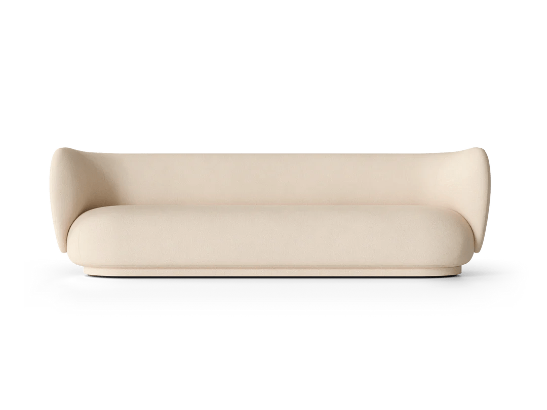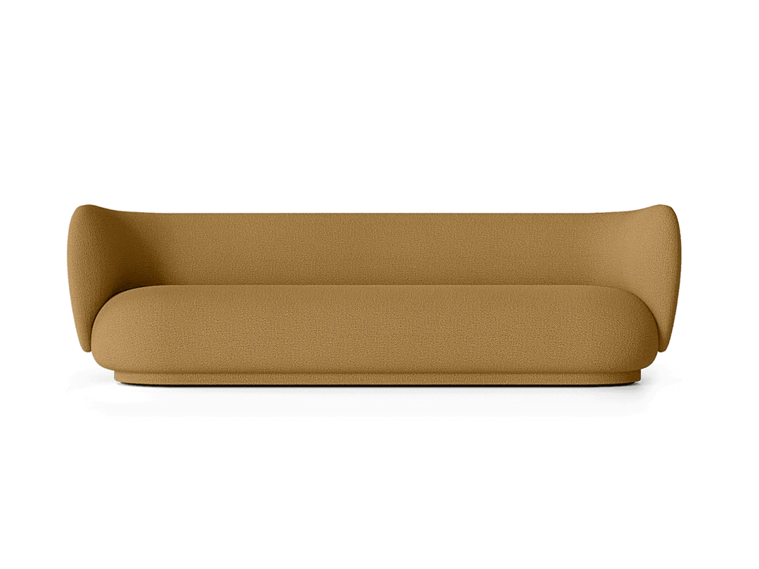 The Ferm Living Rico Sofa 4 is the ultimate statement piece when you need serious seating capacity but don't want your living room to look like a furniture showroom. Since it's made to order, you get to choose from their extensive fabric collection across multiple groups - everything from soft bouclé with that amazing textured feel to brushed chenille and premium Kvadrat options like Hallingdal that completely transform the character of the piece. What makes this four-seater work so well is how the curved backrest flows seamlessly into the armrests, creating this embracing quality that actually makes large gatherings feel more intimate rather than formal. At 260cm long, it's genuinely spacious enough for four adults to sit comfortably without that awkward elbow-bumping you get with smaller sofas trying to accommodate too many people. The construction quality becomes obvious pretty quickly when you're hosting those longer dinner parties or family movie nights. The backrest uses molded foam over an inner metal structure that provides real support even when people are leaning back and settling in for hours, while the seat combines polyurethane foam with a wooden frame for that perfect balance between sink-in comfort and lasting durability. At 76.5cm high with those signature curved lines, it provides proper support without feeling rigid or too formal for everyday use. The low-density polyethylene feet are cleverly hidden by upholstery that extends nearly to the floor, giving it this floating appearance that actually makes large rooms feel more proportional rather than dominated by one massive piece of furniture. Ferm Living approaches furniture design from Copenhagen with that Danish understanding that large pieces need to enhance family life rather than dictate how you live. They recognize that a four-seater sofa will become the heart of your home - the place where kids do homework, friends gather for conversations, and families spend weekend mornings reading together. The Rico collection reflects their philosophy of creating pieces that work as hard as they look good, combining the elegance you want for special occasions with the everyday comfort that makes a house feel like home. Through their partnership with skilled Italian craftspeople and focus on premium materials, they create furniture that becomes integral to how you actually use your space rather than just impressive pieces you worry about protecting.