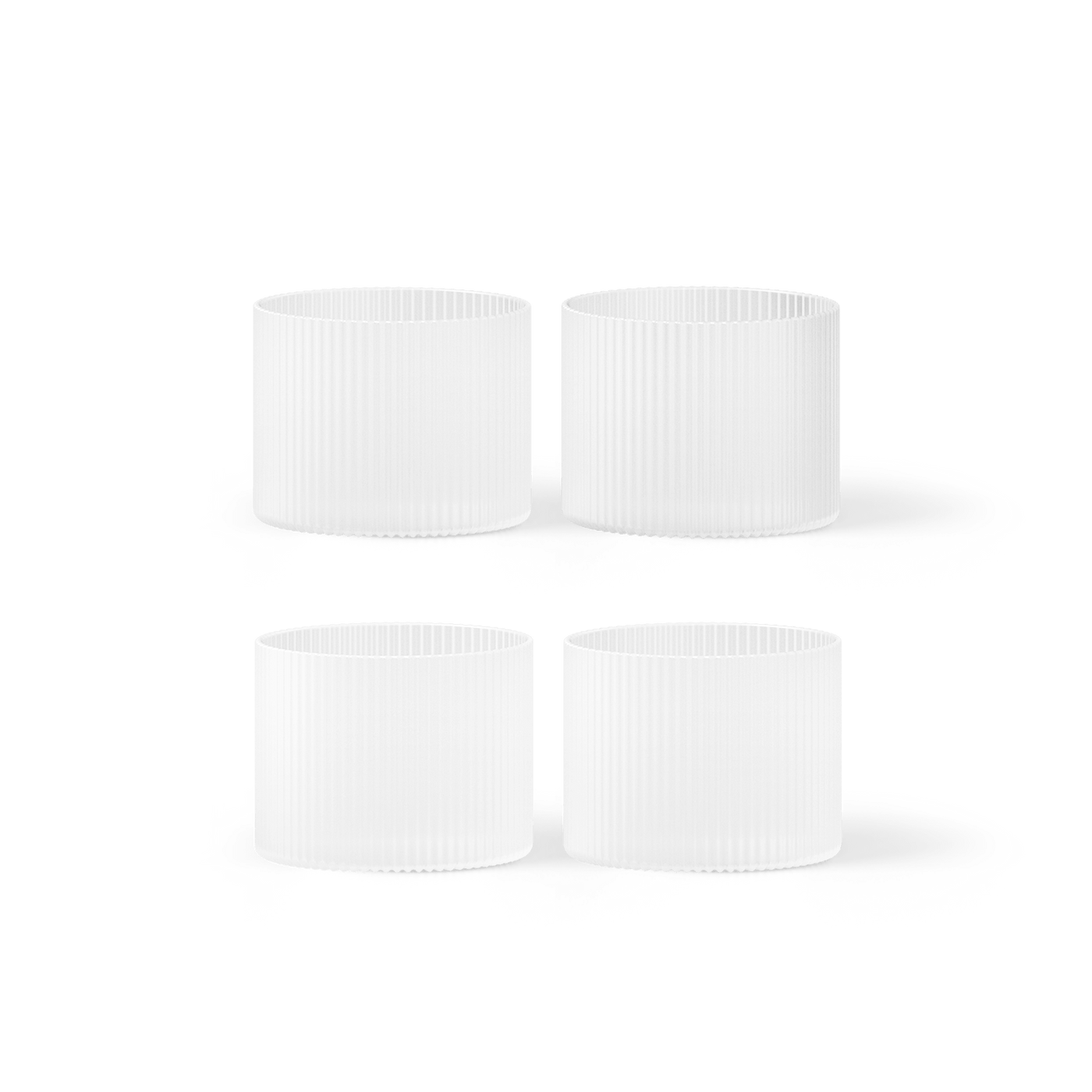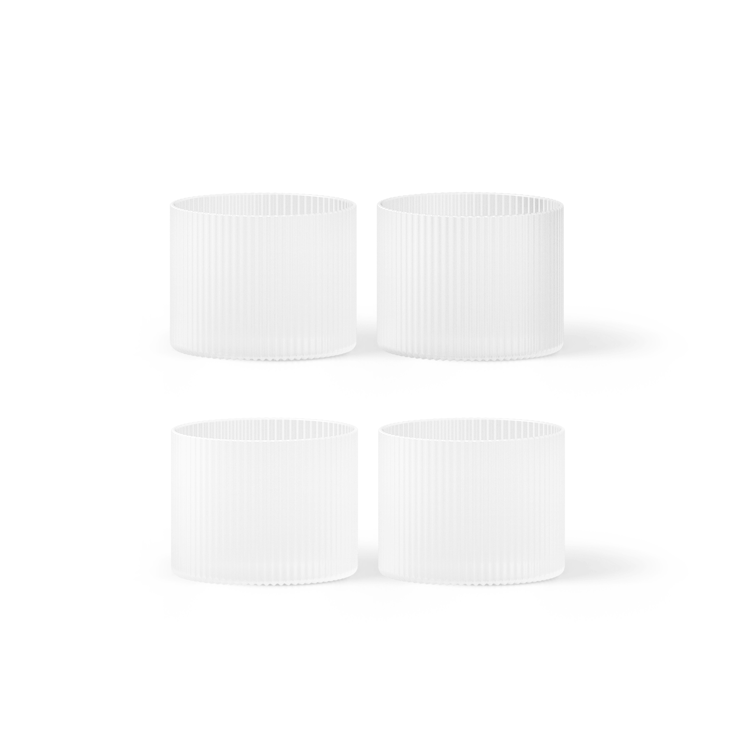The Ferm Living Ripple Low Glasses - Set of 4 bring sophisticated texture to everyday beverage service through their distinctive rippled design and perfectly proportioned glass construction. These elegant ripple glasses transform ordinary drinking moments into tactile experiences with their signature textured surface that creates mesmerizing light play and visual depth. The clean, contemporary silhouette maintains refined simplicity while the low profile works beautifully for everything from water service to cocktails. Whether you're setting a round glass dining table for intimate gatherings or enhancing daily beverage rituals, these glasses deliver both exceptional functionality and captivating aesthetic appeal wrapped in the understated sophistication characteristic of Scandinavian design. This thoughtfully crafted set is more than just attractive drinkware. Each glass features optimal capacity for various beverages while the textured surface provides secure grip that prevents slipping during use. Plus, the premium glass construction ensures exceptional durability that withstands regular entertaining and dishwasher cleaning without losing the distinctive rippled texture or developing chips. The set of four accommodates small gatherings perfectly while the low, stable design prevents tipping and makes them ideal for outdoor dining or casual settings. The unique surface treatment creates beautiful light refraction that elevates even simple beverages into visually interesting presentations. As a result, you can enhance beverage service while adding refined design elements that make ordinary moments feel more intentional and special. Ferm Living, based in Copenhagen, designs with balance, simplicity, and soul. The Ripple Low Glasses reflect the brand's passion for creating glassware that enhances rather than merely serves drinking experiences. Not only do they create distinctive drinkware, but they also offer furniture, lighting, and home accessories—all with an eye for detail. Through quality materials and thoughtful craftsmanship, Ferm Living helps you build dining experiences that feel personal, sophisticated, and deeply considered while celebrating the sensory pleasure of drinking from beautifully designed vessels.