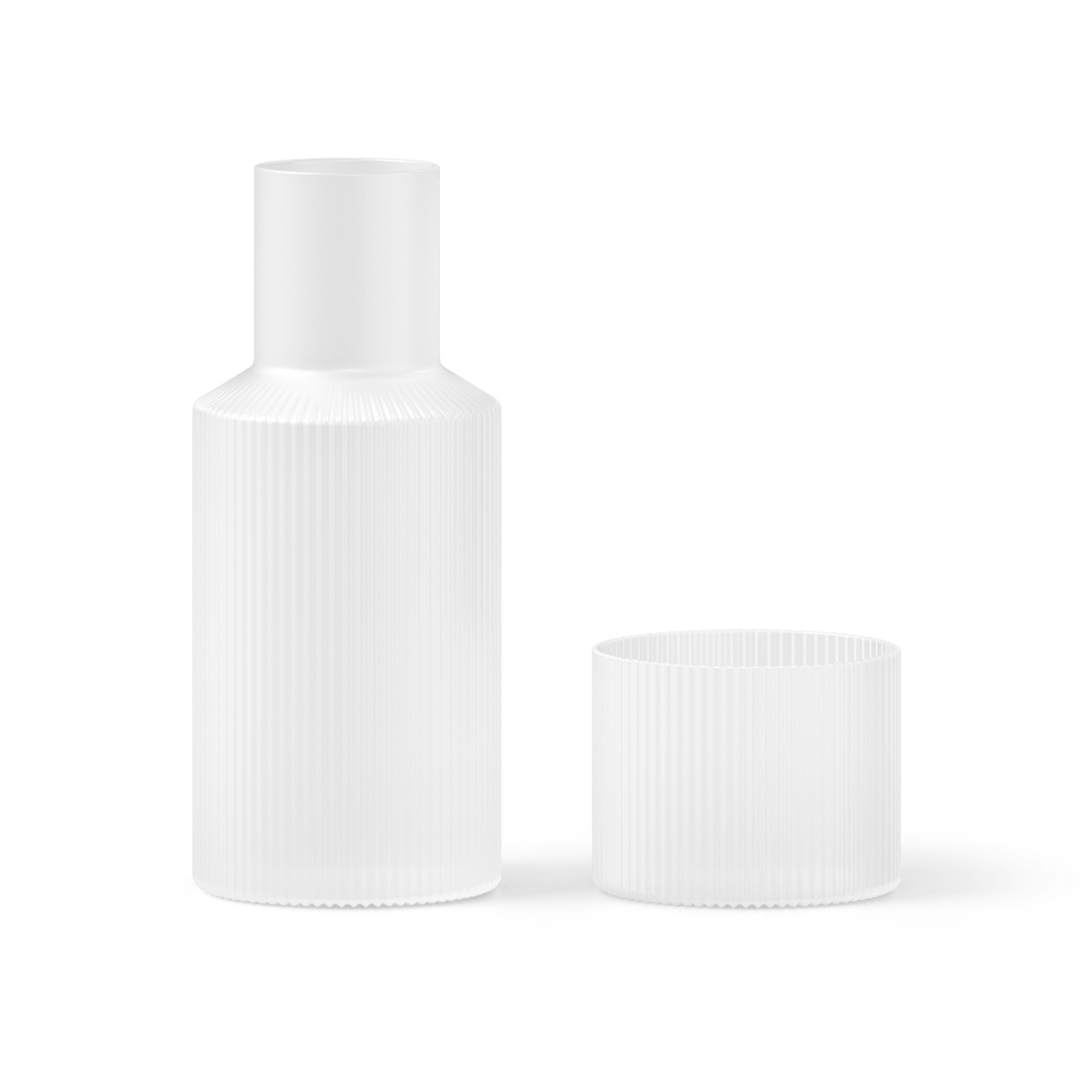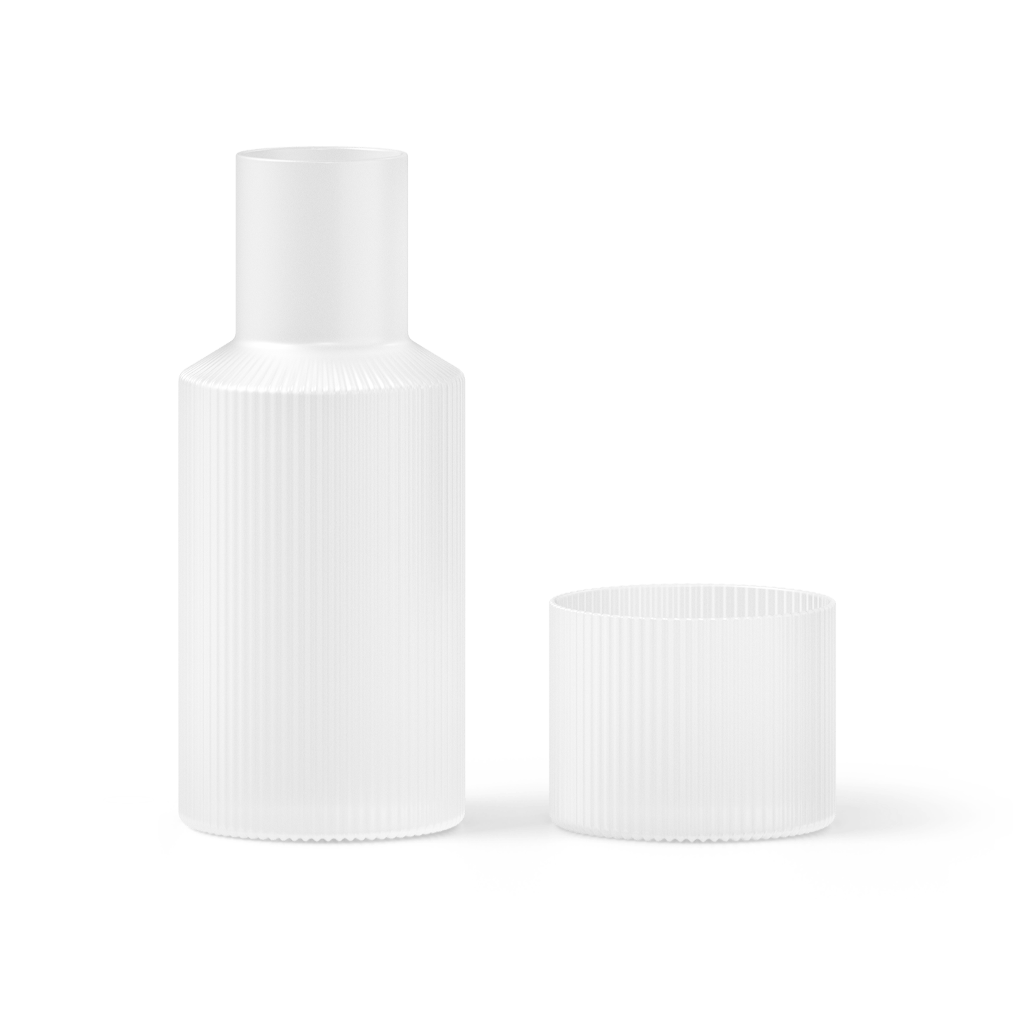 The Ferm Living Ripple Small Carafe Set brings coordinated elegance to beverage service through its distinctive textured design and perfectly matched glass construction. This sophisticated ensemble transforms ordinary drink presentation into artistic display with its signature rippled surface that creates dynamic light play and visual harmony across all pieces. The clean, contemporary silhouettes maintain refined simplicity while the coordinated textures create cohesive table settings that enhance any dining experience. Whether you're serving fresh juice during weekend brunches or presenting wine for intimate dinners, this carafe set delivers both exceptional functionality and striking aesthetic appeal wrapped in the understated sophistication characteristic of Scandinavian design. This thoughtfully curated set is more than just beautiful serving pieces. The carafe provides optimal capacity for beverages while the pour spout ensures controlled, drip-free service, and the matching glasses create seamless coordination that elevates any table setting. Plus, the premium glass construction ensures exceptional durability that withstands regular entertaining and dishwasher cleaning without losing the distinctive rippled texture or developing chips. The compact proportions work beautifully for intimate gatherings while the unique surface treatment creates fascinating light refraction that makes even simple beverages appear sophisticated and intentional. As a result, you can create coordinated beverage presentations that enhance both casual family meals and special occasion entertaining. Ferm Living, based in Copenhagen, designs with balance, simplicity, and soul. The Ripple Small Carafe Set reflects the brand's passion for creating coordinated glassware that enhances rather than merely serves beverage experiences. Not only do they create matching serving sets, but they also offer furniture, lighting, and home accessories—all with an eye for detail. Through quality materials and thoughtful craftsmanship, Ferm Living helps you build dining moments that feel personal, cohesive, and deeply considered while celebrating the visual and tactile pleasure of serving beverages from beautifully designed vessels.