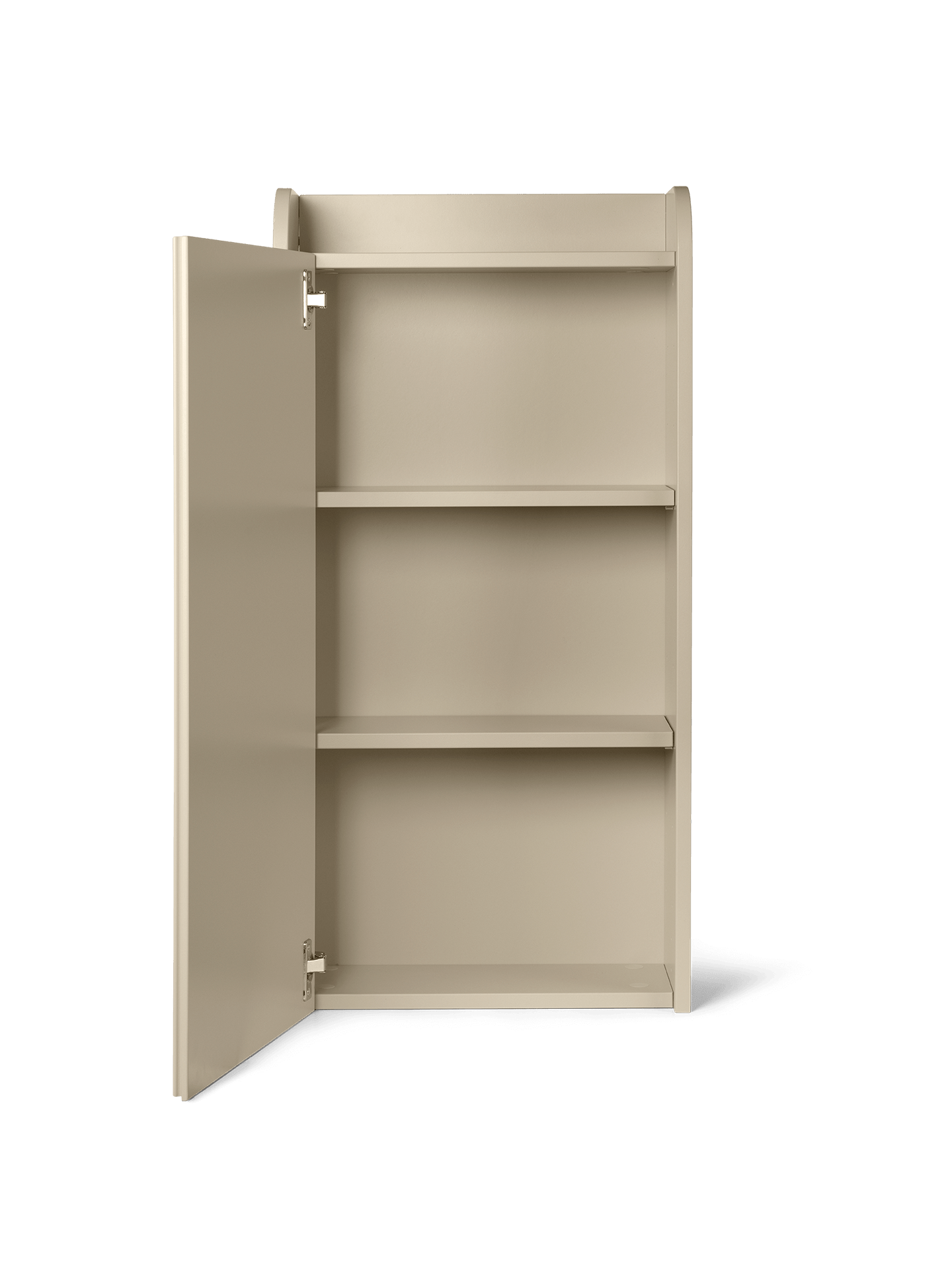 The Ferm Living Sill Wall Cabinet captures the essence of collected living through its elegant glass-fronted design and warm oak framework. This refined wall cabinet brings museum-quality display to everyday interiors with its clean lines and transparent viewing panel that showcases treasured objects beautifully. The thoughtful proportions create perfect balance between substantial storage capacity and visual lightness that won't overwhelm your space. Whether you're curating vintage ceramics or protecting family heirlooms, this modern curiosity cabinet delivers sophisticated presentation wrapped in the timeless craftsmanship characteristic of Danish design tradition. This versatile display solution is more than just protective storage. The glass front provides dust-free protection while maintaining complete visibility of your collections, and the adjustable interior shelving accommodates objects of varying scales from delicate figurines to substantial decorative pieces. Plus, the wall-mounted installation maximizes floor space while positioning displays at optimal viewing height for daily enjoyment. The quality oak construction ensures lasting durability through years of use, while the brass hardware details add subtle luxury touches. This cabinet with cover functionality means your most precious items stay pristine while remaining beautifully accessible. As a result, you can transform personal collections into curated displays that enhance your home's character and tell your unique story. Ferm Living, based in Copenhagen, designs with balance, simplicity, and soul. The Sill Wall Cabinet reflects the brand's passion for creating furniture that celebrates personal collections rather than hiding them away. Not only do they create display storage, but they also offer seating, lighting, and decorative accessories—all with an eye for detail. Through sustainable materials and thoughtful craftsmanship, Ferm Living helps you build spaces that feel personal, meaningful, and deeply considered while honoring the objects that make your house truly feel like home.