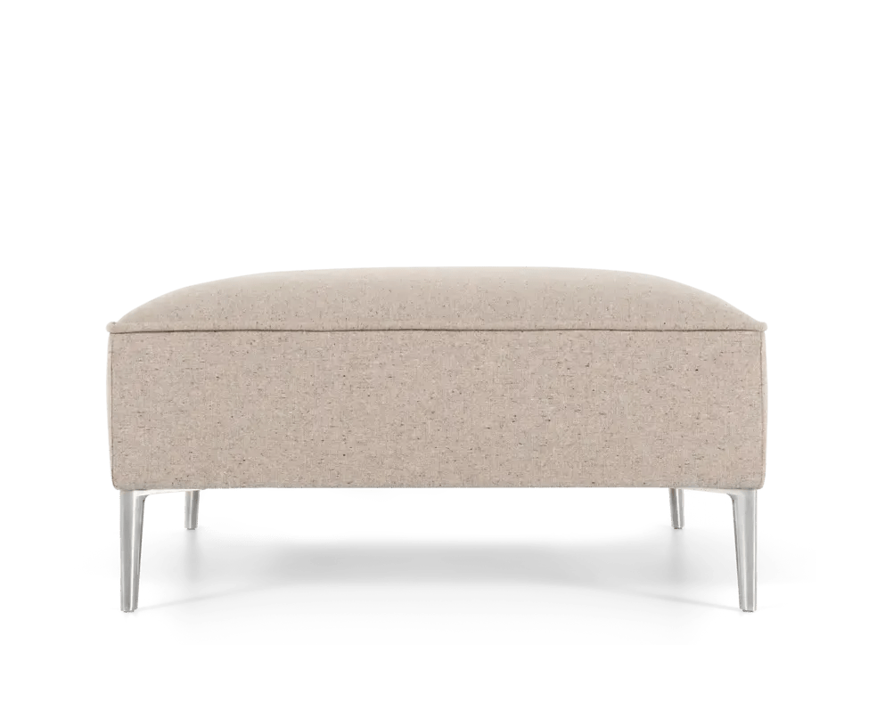 The Moooi Sofa So Good Footstool is Marcel Wanders' way of completing the modular Sofa So Good system with something that actually elevates your lounging game instead of just being a token ottoman you never use. Part of the larger collection designed back in 2020, it shares that signature contrast between linear framework and soft, curvy cushioning - squared-off edges wrapped in plush upholstery with those piped edges that give it a tailored, finished look. The "feather feel" they talk about isn't just marketing speak - the foam over elastic straps creates this soft-yet-supportive quality that works well for propping your feet up during extended sitting sessions. The polished aluminum feet give it a slight lift that keeps the visual weight from getting too heavy. Available in over 561 different fabric options, so you can match it perfectly to your Sofa So Good configuration or use it as a standalone piece in whatever upholstery suits your space. What makes this more practical than typical modular footstools is how the proportions work both as part of the system and independently. At 37 inches square, it's substantial enough to function as extra seating when you need it, a coffee table alternative for casual spaces, or actual footrest duty without looking awkward floating in a room. The construction uses a steel frame that provides real structure under all that cushioning, so it's not going to collapse or lose shape after a few months of daily use. The squared-off form makes it easy to position against sofa modules or use symmetrically in a space, and those piped edges add definition that keeps it looking intentional rather than like a formless blob. Works well for completing an L-shaped sectional setup, providing a landing spot in the middle of larger configurations, or just giving you somewhere to put your feet up when you're settled in for a movie marathon. Moooi operates out of the Netherlands with Marcel Wanders as co-founder and artistic director, bringing this philosophy around creating furniture that supports how people actually live rather than just looking impressive in photos. Wanders designed Sofa So Good to be about choices - every configuration, fabric, and component letting you build something personal rather than buying a predetermined system. The brand's known for quality construction methods and materials that justify the investment, using proper frames, quality foam and springs, upholstery that holds up over years of real use. They work with manufacturers who understand that modular furniture gets rearranged, sat on from every angle, and used hard, so they engineer accordingly while maintaining that distinctive Moooi character that makes their pieces recognizable and desirable.