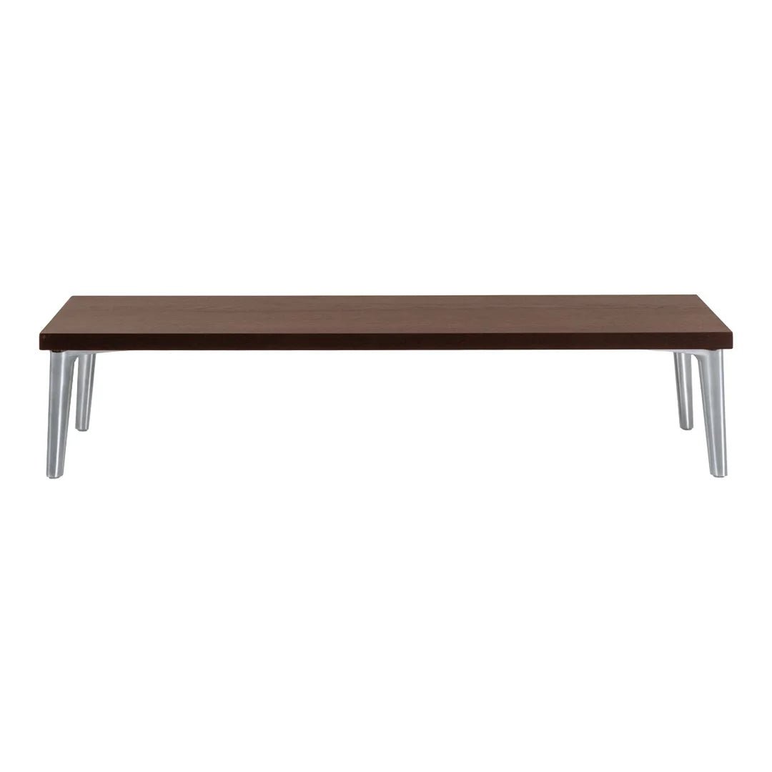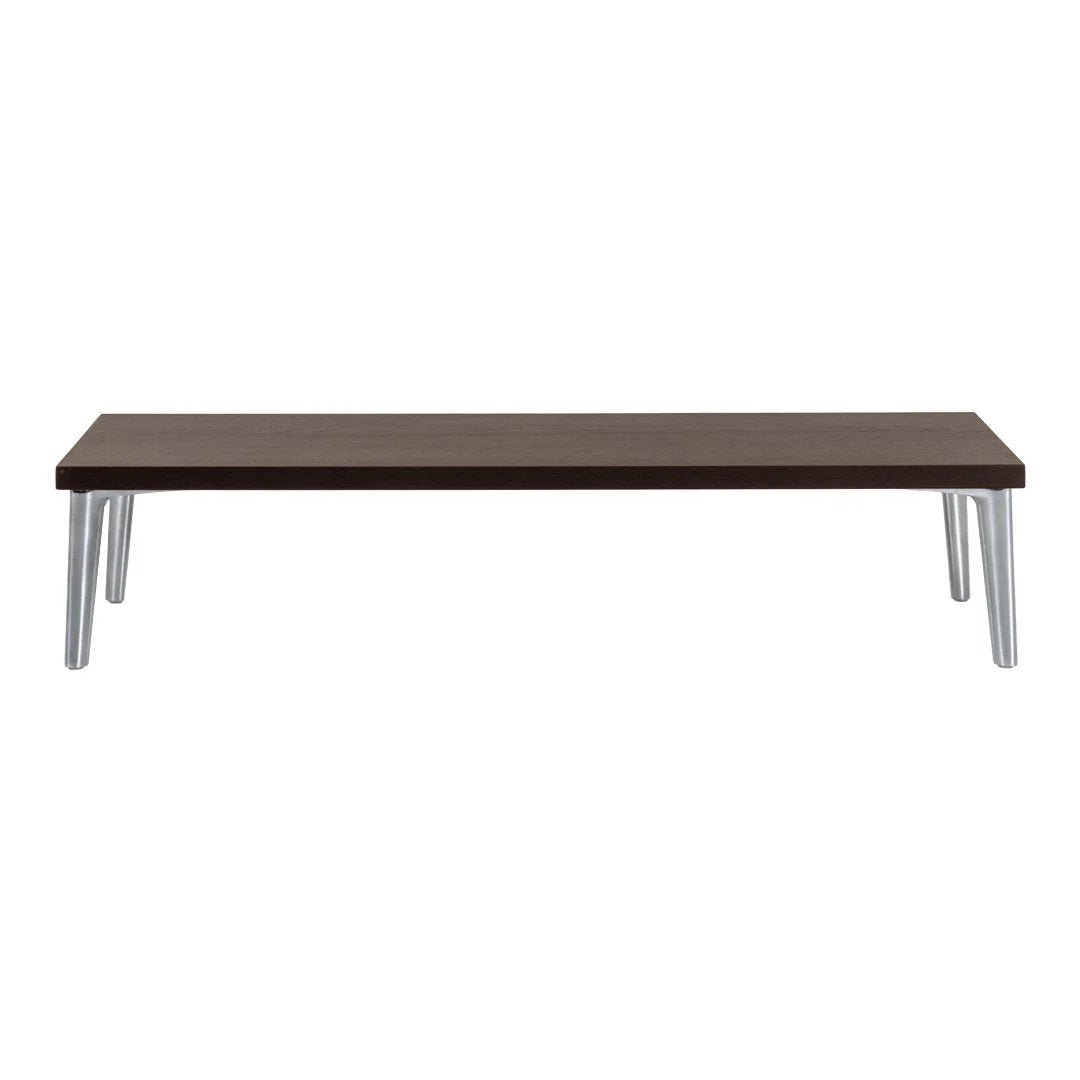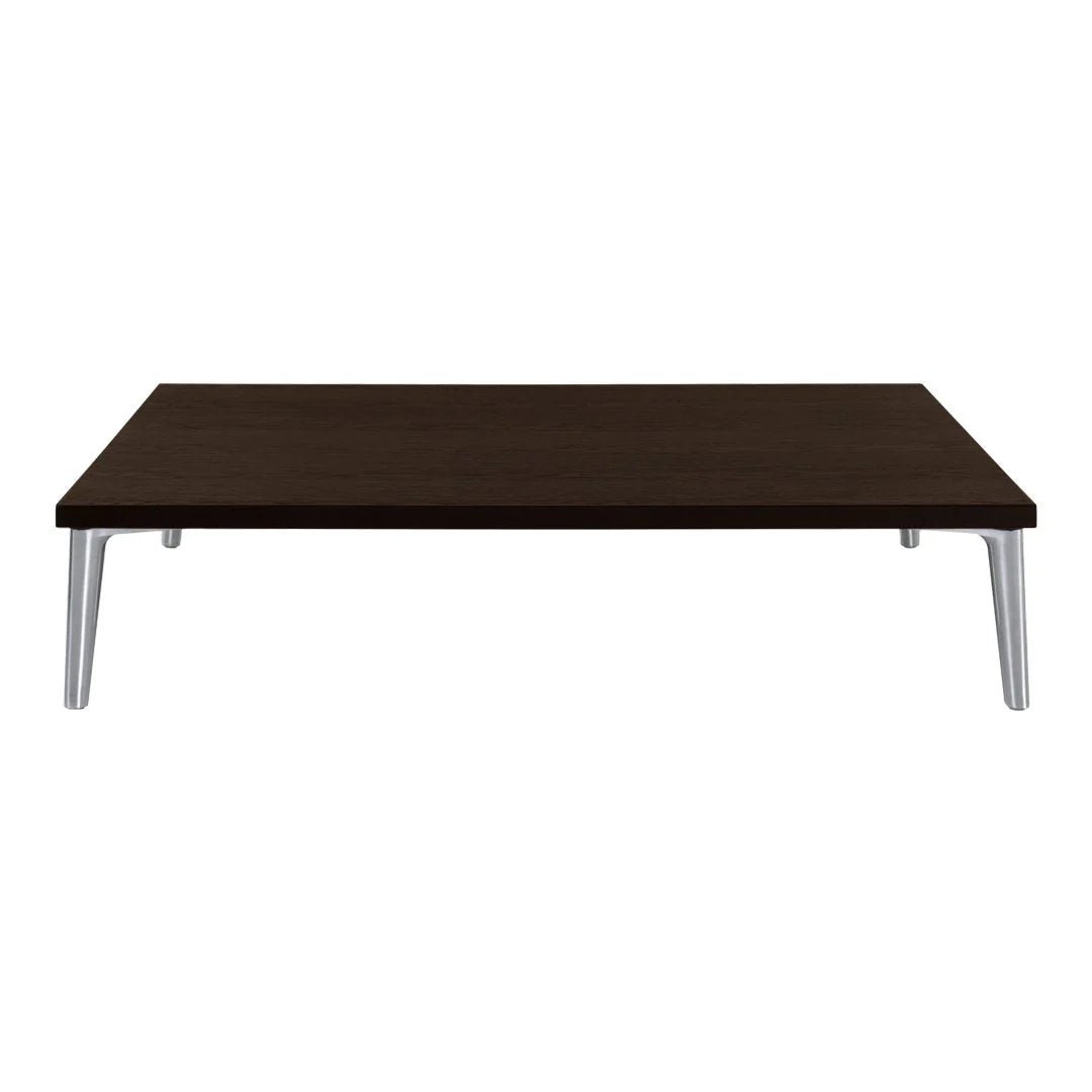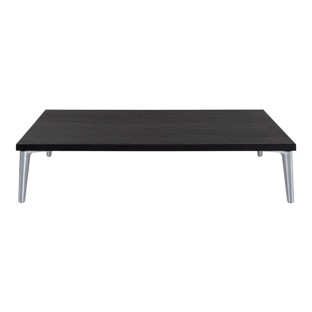The Moooi Sofa So Good Table came out as part of Marcel Wanders Studio's whole modular sofa system - basically they made matching tables so you could build out complete seating configurations without hunting down separate coffee tables that sort of match. Works two ways: either slot it into your Sofa So Good setup as an integrated piece, or just use it as a regular low table next to any sofa you already own. Oak veneer construction with those signature polished aluminum feet that match the sofa modules, and you get six wood finish options - Black, Cinnamon, Grey, Natural Oil, Wenge, or White Wash. Comes in square at 36 inches on each side, or rectangular at 36 by 14 inches if you need something narrower that fits between sofa sections. Both versions sit super low at about 8 inches tall, which makes sense when you consider they're designed to nestle into modular seating rather than function as standalone coffee tables. The low profile works better than you'd think for integrated configurations - when the table's positioned between sofa modules, that 8-inch height keeps it accessible without blocking views across the seating. The polished aluminum feet tie into the visual language of the Sofa So Good collection, so everything looks cohesive if you're going full modular system. Oak veneer over engineered wood keeps costs somewhat reasonable compared to solid wood while still showing grain patterns, and the six finishes let you coordinate with whatever upholstery colors you picked for the sofa pieces. The rectangular version's narrow depth means it can tuck into tighter spots or work as a side element, while the square one functions better as a centerpiece. That low height means it's not ideal as a traditional coffee table if you're actually trying to eat meals on it, but for holding drinks, remotes, or books while you're lounging it does the job. Moooi's Wanders' brand since 2001, and the Sofa So Good system represents his take on modular furniture that's actually upscale rather than looking like dorm furniture you can rearrange. The full collection includes eight different upholstered modules plus tables and shelves, all designed to mix and match based on your space and how you want people to sit. The tables are optional add-ons rather than required pieces, so plenty of people build Sofa So Good configurations without them and just use whatever tables they want. Made with Moooi's usual attention to materials and finish quality - not cheap, but you're getting furniture that holds up instead of particle board wrapped in vinyl. The system's been around long enough that you can add pieces over time if your space or needs change.