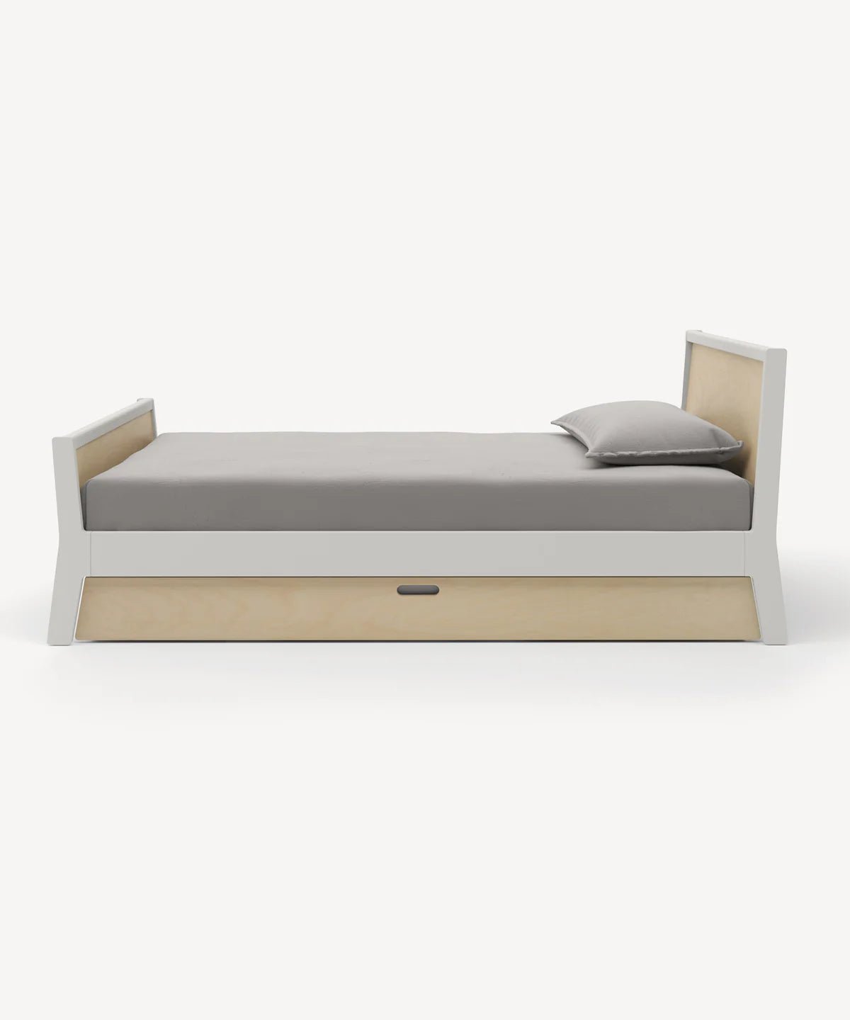 The Oeuf Sparrow Trundle Bed is the perfect addition to the Sparrow Twin Bed, maximizing its functionality for growing families. With the optional trundle mattress (sold separately), this bed effortlessly transforms into an extra sleeping space for guests or sleepovers. On the other hand, when the mattress isn’t in use, the trundle can be conveniently used as additional storage for clothes, sheets, or blankets. Designed with hidden wheels and a slatted base that supports up to 225 lbs, this trundle bed is an excellent choice for those seeking versatile and practical solutions for their home. Made in Europe, the Oeuf Sparrow Trundle Bed is built with high-quality, eco-friendly materials, ensuring durability and safety. Constructed from solid birch and Baltic birch plywood, it offers a sturdy frame, while its non-toxic, water-based finishes are free from VOC health hazards. In addition, this trundle bed is GREENGUARD Gold certified, meeting the highest indoor air quality standards. Not only is it sustainable, but the trundle is also produced in a Forest Stewardship Council-certified facility, supporting environmentally conscious practices. The Oeuf Sparrow Trundle Bed truly reflects a commitment to responsible manufacturing. Oeuf is a renowned brand dedicated to creating stylish, functional, and sustainable furniture. With a focus on quality craftsmanship and ethical production, Oeuf ensures that all of their pieces, including this trundle bed, are made under strict European environmental and labor standards. The brand is committed to using responsibly sourced materials and eco-friendly finishes, so every piece is both safe and long-lasting. By choosing a Oeuf product, you are investing in furniture that is built to last, while also supporting environmentally sustainable practices.