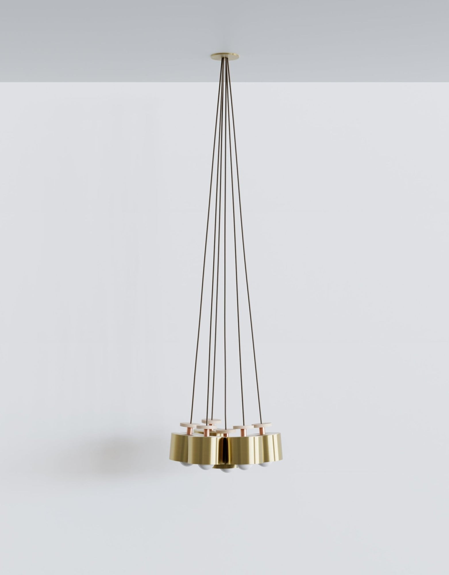 The L&G Spun Cluster 7 Piece takes the single Spun pendant and multiplies it into this cascading arrangement that creates way more visual impact than seven individual lights ever could. Seven pendants hang at different heights from a single 19.5-inch canopy, creating this organic cluster that looks deliberate but not overly designed. Perfect over dining tables where you want coverage without a massive linear fixture, or suspended in stairwells where the multi-level arrangement plays with the vertical space. Works beautifully over coffee tables in living rooms too - gives you enough light for reading or conversation without that single harsh overhead fixture vibe. The 80-degree spread from each pendant means you get layered pools of light that overlap in interesting ways depending on how you adjust the cord lengths. The material combinations give you serious flexibility in how the whole thing reads in your space. Go with all frosted glass and copper stems for something softer and more cohesive, or mix brushed brass with matte black pendants if you want contrast and visual interest. The rust and cream glass options let you play with transparency - some shades glow more than others, creating depth in the cluster. Each pendant comes with an 8-foot adjustable dark grey fabric cord, so you can customize the heights on site rather than being stuck with whatever the manufacturer decided. Takes standard E26/E27 bulbs (G25 or G95 size) up to 75 watts per pendant, needs dimmable bulbs and a wall dimmer for controlling the mood. The canopy automatically matches your shade choice - matte white for brass and glass shades, matte black for the powder-coated versions. UL and cUL certified, so it meets safety standards across North America. L&G operates out of Brooklyn with this approach that lighting should feel considered but not precious. They're working with spun metal, hand-blown glass, and quality hardware that ages instead of just deteriorating. The Spun Cluster shows their philosophy - take a strong single fixture design and scale it into something that works for larger spaces while keeping that same attention to materials and proportions that makes the individual pendants work so well.