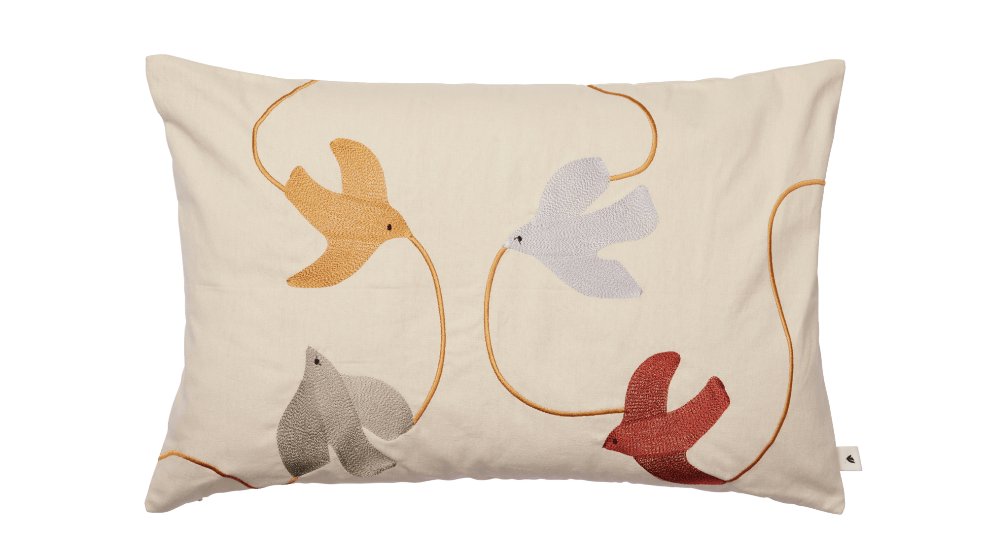 Made from 100% gots certified organic cotton with embroidery. feather and down filling, the Swif Bird Embroidered Cushion - Rectangular - Mult balances tactile appeal with everyday practicality, making it a versatile finishing piece for contemporary spaces.