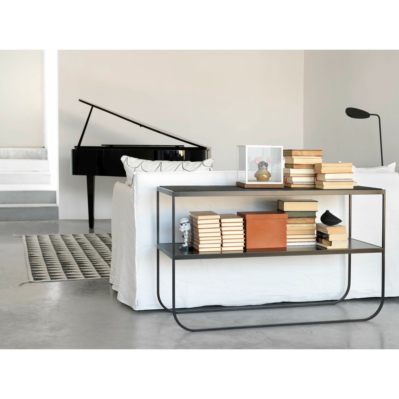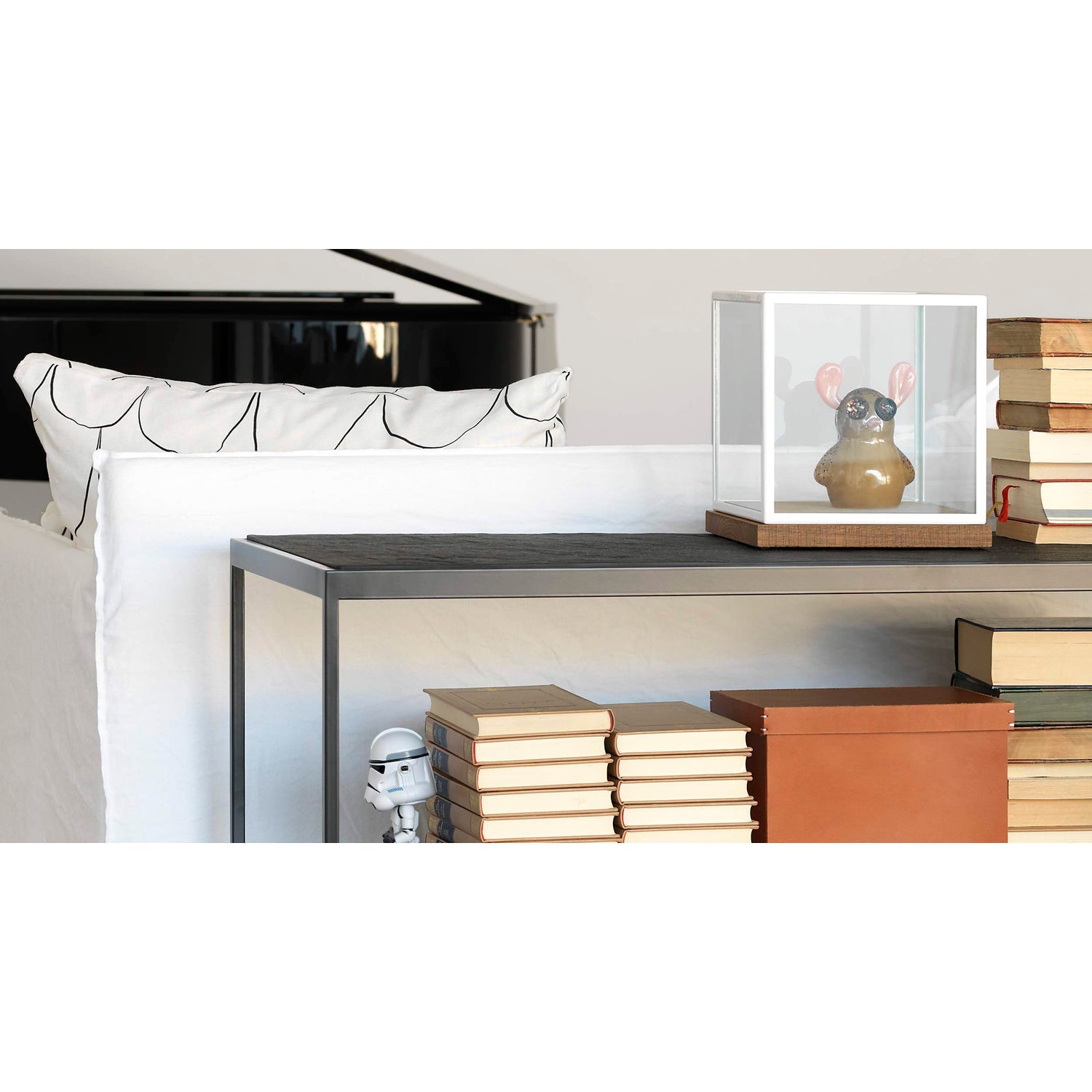 - Shelf: Lacquered MDF same color as base. Bronze has oak veneer shelf.