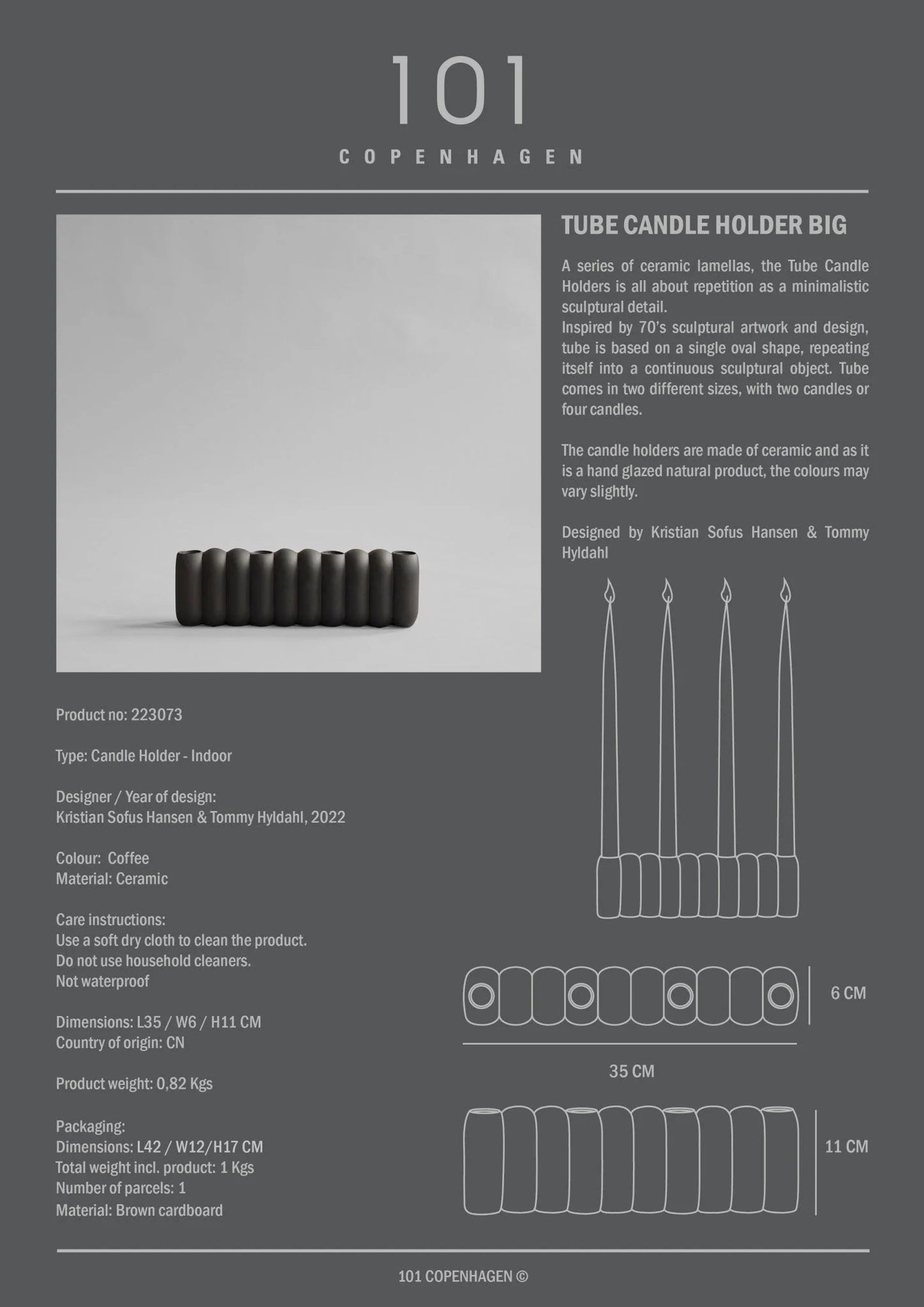 The 101 Copenhagen Tube Candle Holder brings minimalist sophistication to any space, delivering contemporary elegance that works perfectly for creating ambient lighting while adding clean sculptural presence to dining tables, console surfaces, or shelving displays. The bone white finish adds soft luminosity and timeless appeal while providing the perfect platform for taper candles to create intimate atmospheric lighting with understated refinement. What's particularly appealing about the Tube is how its cylindrical, geometric form manages to feel both architecturally precise and surprisingly versatile, creating substantial design presence without overwhelming intimate spaces or competing with existing decorative elements. The construction quality becomes evident through regular use, with the bone white finish maintaining its pristine appearance through regular candle changes, wax drips, and occasional cleaning. The carefully considered proportions work beautifully for standard taper candles - the cylindrical form creates stable support while the substantial weight provides excellent stability for safe burning. The smooth surface makes wax removal effortless, and the clean geometric lines create visual harmony that enhances both casual and formal lighting displays. The holder encourages versatile candle styling rather than conventional use, offering reliable functionality for everything from dinner party ambiance to everyday mood lighting while maintaining its sculptural beauty through constant repositioning and seasonal styling changes. 101 Copenhagen approaches decorative lighting with the understanding that contemporary candle holders should enhance both practical illumination and architectural sophistication. They recognize that the best lighting accessories serve as both functional supports and minimalist design elements while maintaining the refined aesthetic qualities that make statement pieces feel intentionally curated rather than merely utilitarian. The Tube Candle Holder collection reflects this philosophy perfectly, creating pieces that honor both geometric form and practical function while providing the versatility and visual impact that make architectural accessories essential for how people actually want to create atmospheric lighting and sculptural beauty in their contemporary homes.