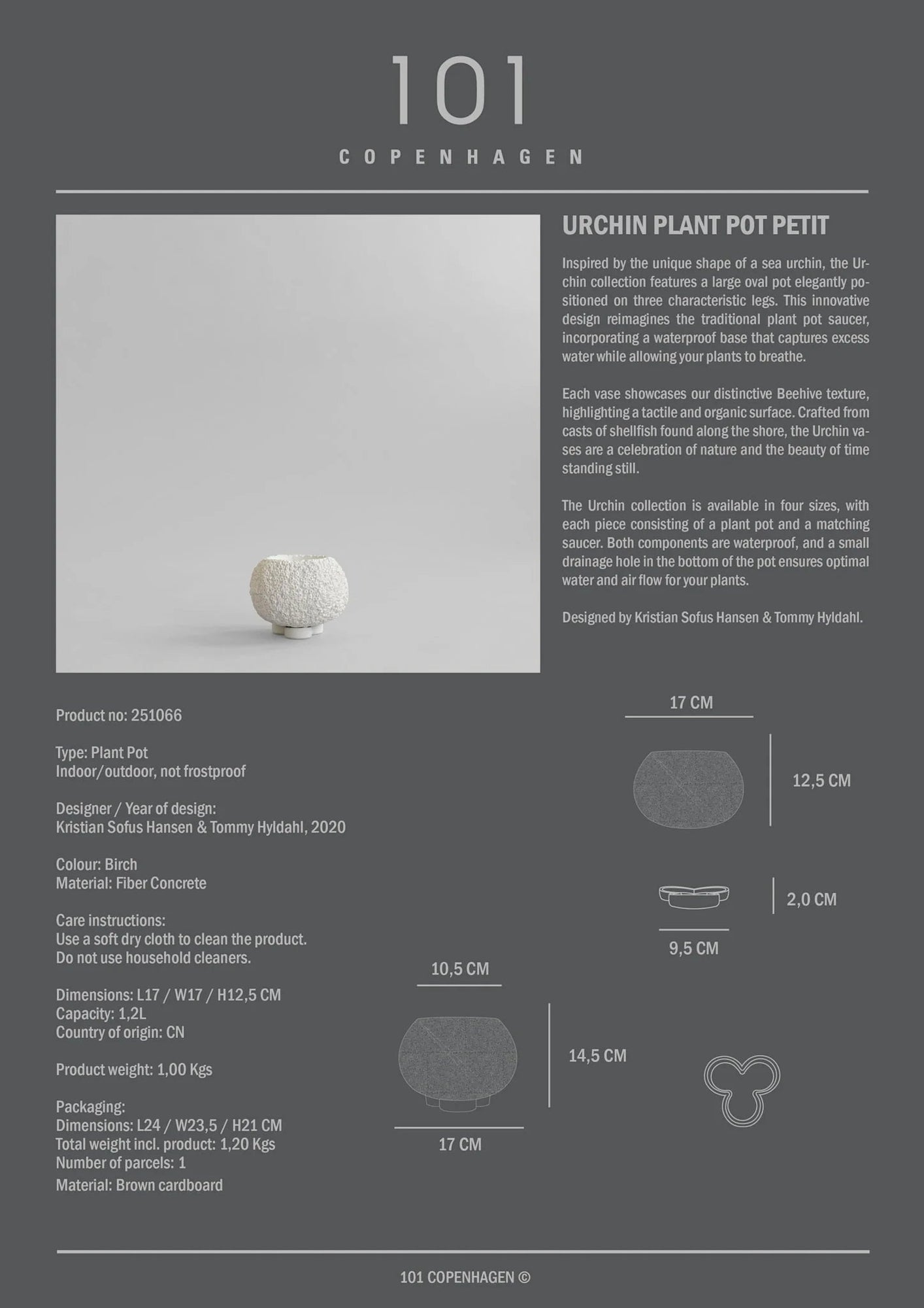 The 101 Copenhagen Urchin Plant Pot brings oceanic sophistication to botanical decoration, delivering a sculptural planter that combines sea-inspired design elements with practical functionality while providing the perfect vessel for displaying plants, greenery, or standing alone as striking decoration that enhances living rooms, patios, or garden spaces with marine character. This plant pot understands that oceanic botanical decoration should offer both visual impact and genuine utility - providing beautiful forms and refined construction that elevate room aesthetics while offering reliable functionality for potted plants, indoor gardens, or simply serving as sculptural presence that makes spaces truly distinctive. The Urchin design achieves this through quality materials and marine proportions that create substantial presence without overwhelming botanical arrangements, making it ideal for indoor gardens, outdoor patios, console surfaces, or any location that benefits from planters with oceanic character and horticultural functionality. What's particularly striking about this plant pot is how it manages to feel both naturally textural and sculpturally bold, providing the botanical vessel that makes plant displays memorable while adding oceanic sophistication that makes spaces feel naturally grounded and thoughtfully appointed. The construction quality becomes evident when this plant pot handles regular use while maintaining its refined appearance through daily interaction with watering, repotting, and seasonal plant changes. The surfaces provide dependable support for various plant types and arrangements, while the materials maintain their textural aesthetic through regular watering and environmental exposure. The marine proportions work perfectly with different plant scales and growing needs - substantial enough to support established plants but scaled appropriately for residential settings that celebrate both function and oceanic aesthetic. The plant pot encourages active gardening rather than precious treatment - providing reliable functionality for everything from houseplants to seasonal displays without feeling fragile or overly decorative. The overall form manages to feel both substantial and naturally sculptural, offering the kind of dependable functionality that makes botanical planters essential while maintaining the oceanic beauty that makes marine spaces feel intentional and naturally appointed. 101 Copenhagen approaches oceanic plant pot design with the understanding that botanical decoration should enhance both practical gardening and marine sophistication, creating pieces that support plant care while contributing to the overall character and natural appeal of thoughtfully designed spaces. They recognize that the best botanical planters serve both horticultural and aesthetic purposes while maintaining the oceanic design elements that make contemporary spaces feel systematically coherent and naturally refined. The Urchin Plant Pot collection reflects this philosophy perfectly, creating vessels that honor marine design principles while providing the functionality and oceanic appeal that make natural decoration essential for how people actually want to garden and style spaces that celebrate both practical utility and the enduring appeal of textural, contemporary design.