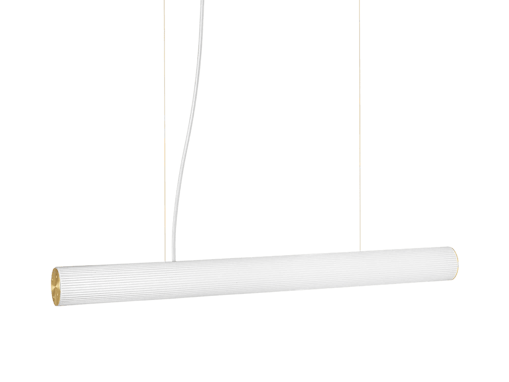 - Material: Mouth-blown rippled opal glass tube with solid brushed brass parts. 236.2 inches white fabric cord. 197 inches suspension wire