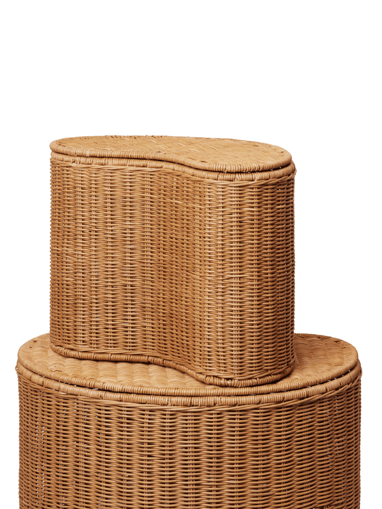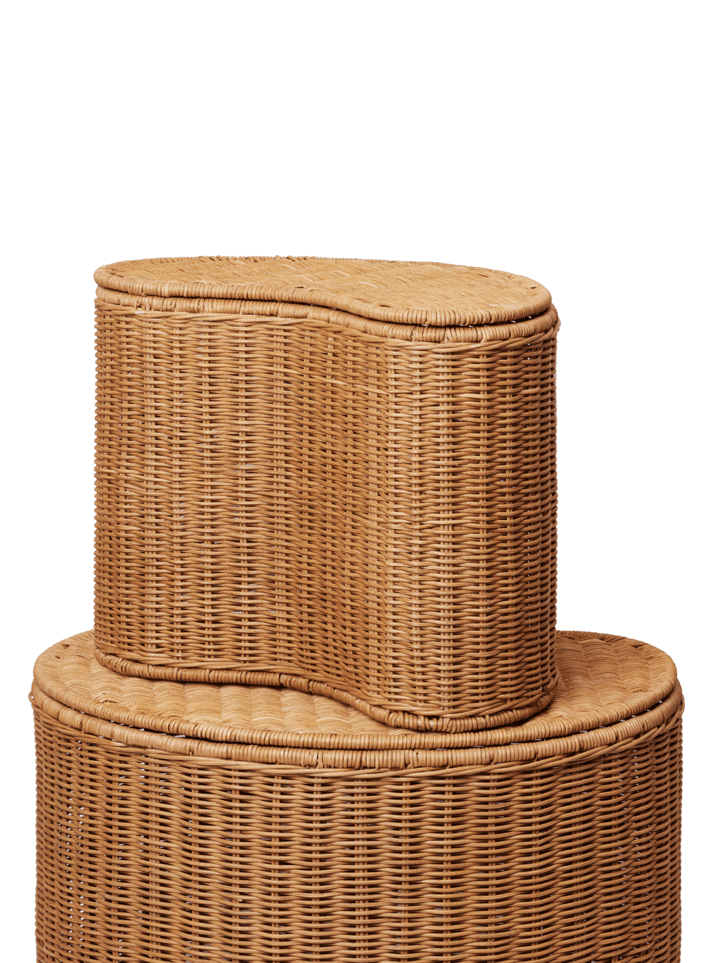 The Ferm Living Willora Braided Storage baskets take the ancient craft of braiding and reimagine it as sophisticated modern storage that actually improves how your space looks and functions. The design team at Ferm Living recognized that most storage solutions either hide away completely or try too hard to be decorative, so they created these handwoven baskets that strike that perfect balance between beautiful and practical. The natural fiber construction gives each basket this organic texture that softens hard-edged modern interiors while providing serious storage capacity for everything from throw blankets and magazines to kids' toys and seasonal accessories. What's clever about having them as a set of two is how they create visual rhythm when placed together, but work just as well separated throughout your home when you need storage solutions in different rooms. The craftsmanship becomes obvious the moment you handle these baskets - the tight, even braiding creates structure that holds its shape even when fully loaded, and the natural materials develop this beautiful patina over time instead of looking worn out. The proportions are thoughtfully calibrated so they're substantial enough to hold bulky items like comforters or winter gear, but not so large that they overwhelm smaller spaces. The handles are integrated into the braiding in a way that feels natural and provides a secure grip for moving them around, whether you're doing seasonal organization or just tidying up before guests arrive. The neutral color palette works with virtually any decor style, from Scandinavian minimalism to bohemian maximalism, and the organic texture adds warmth to spaces that might otherwise feel too sterile or contemporary. Ferm Living approaches home accessories with that distinctly Danish philosophy where functional pieces should enhance daily life through honest materials and thoughtful design rather than creating more visual noise. Founded on the belief that good design should be accessible and livable, the brand consistently creates products that solve real organizational challenges while contributing genuine beauty to living spaces. Their collaboration with skilled artisans on pieces like the Willora collection reflects this commitment to combining traditional craftsmanship with contemporary needs, ensuring that storage solutions work as hard as they look good while supporting sustainable production methods and timeless aesthetic appeal.